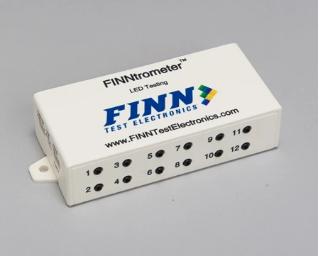 Le FINNtrometer™ est un module plug-and-play conçu pour tester de 1 à 12 LED. Il peut être connecté en série (daisy chain) pour tester jusqu'à 254 LED en utilisant un seul câble USB ou série.