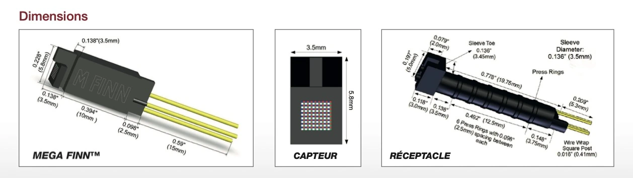 - Câbles à fibre optique de 1,28 mm : Idéals pour tester des LED très rapprochées.