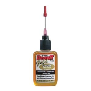 DEOXIT Gold-Series : C'est le seul produit actuellement sur le marché capable de pénétrer les surfaces métallisées et les composés moléculaires jusqu'aux métaux de base pour les rendre étanches et les protéger.
