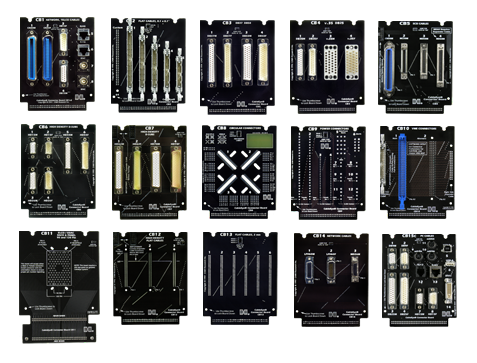 Ces dispositifs d'interface de test interchangeable, avec détection automatique, permettent une configuration et un test rapides des câbles standards. Notre testeur polyvalent vous propose plusieurs options de connexion à l'élément à tester. En plus des cartes de connecteur affichées sur cette page, vous pouvez également brancher vos propres câbles d'interface personnalisés directement sur l'un des connecteurs à 64 broches du testeur, ou utiliser un panneau d'interface de test, idéal pour un système monté en rack, consultez les exemples pour vous inspirer. Avec notre logiciel PinMap™ en option, vous pouvez rapidement cartographier votre faisceau de câbles ou votre panneau de connecteur personnalisé. Nous proposons également le développement d'interfaces de test sur mesure.